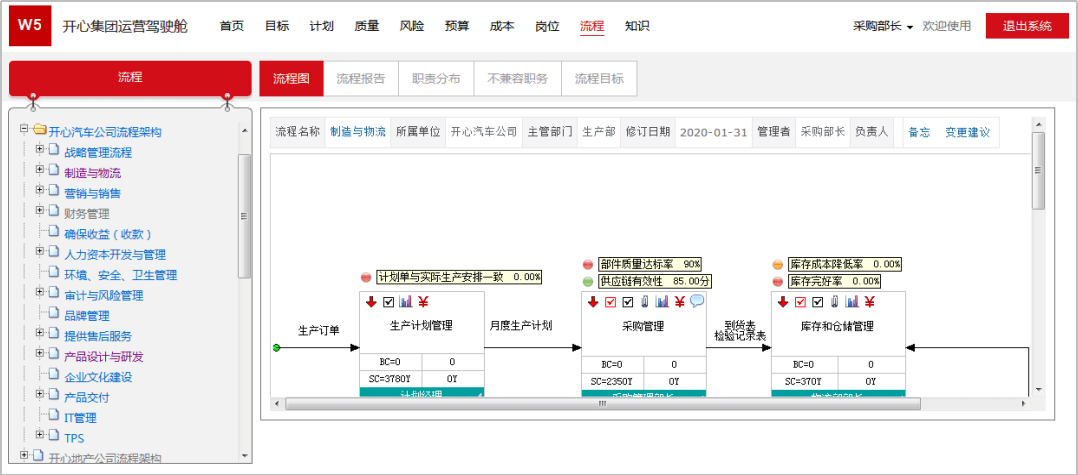 L2:通過專業(yè)化的BPM管理軟件【如:漢哲W5】,實(shí)現(xiàn)對流程及相關(guān)管理要素(如:考核、制度、精益管理指標(biāo)等)的全面管理,使得流程體系有效發(fā)揮其管理效能;