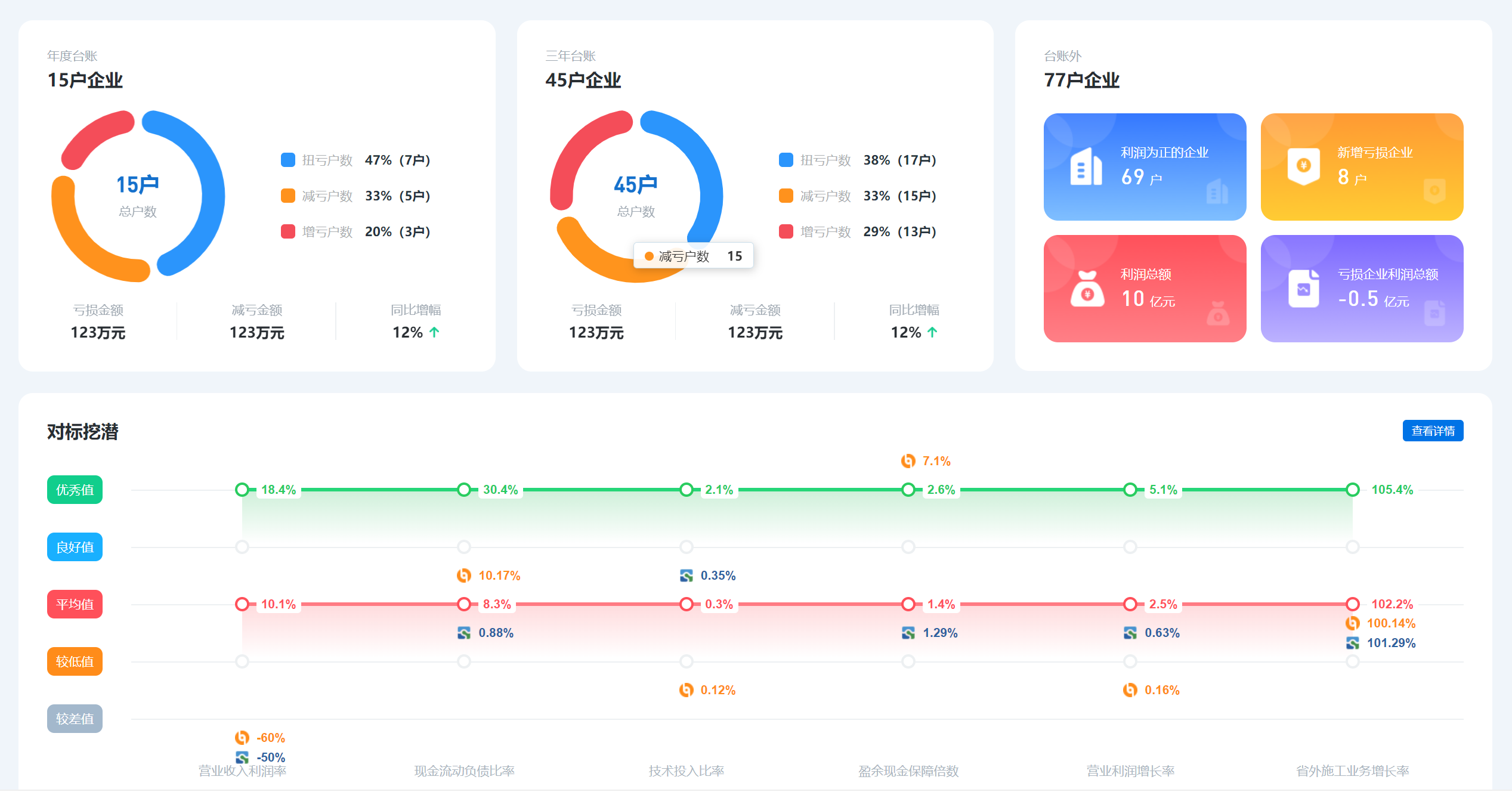 3.  對(duì)標(biāo)挖潛,標(biāo)桿對(duì)照情況形象化展現(xiàn);
