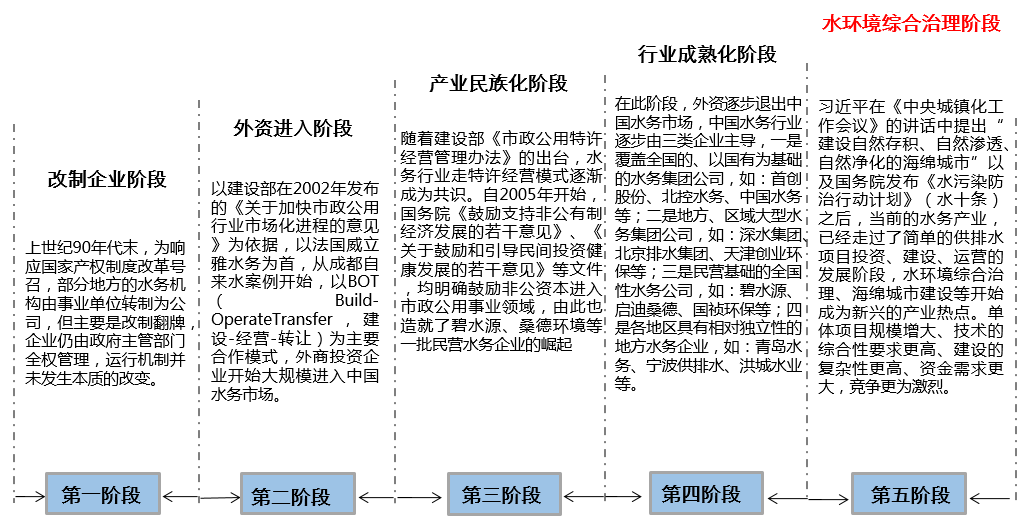 中國的水務(wù)行業(yè),走過了五個重要的發(fā)展階段: