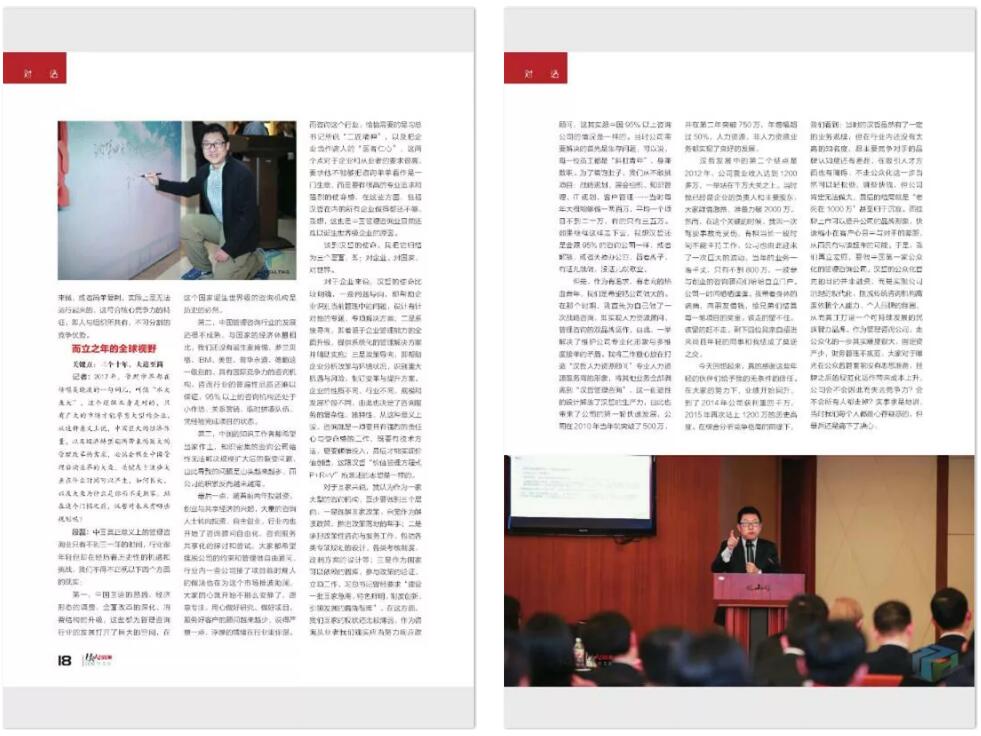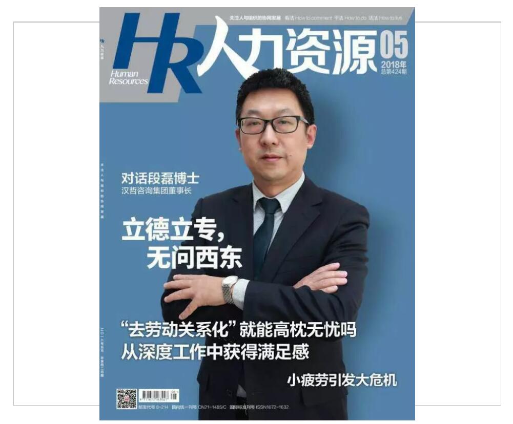 《人力資源》雜志2018年第5期(總第424期)以漢哲咨詢(股票代碼:832830)首席專家段磊博士為封面人物,刊登了題為《立德立專,無問西東》的專題對話訪談錄。