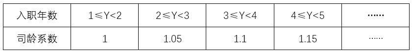 司齡系數反映激勵對象已在公司工作的年限,以授予日為基準,參與計劃的激勵對象入職年數每增加1年,司齡系數增加0.05,具體如表3-4所示: