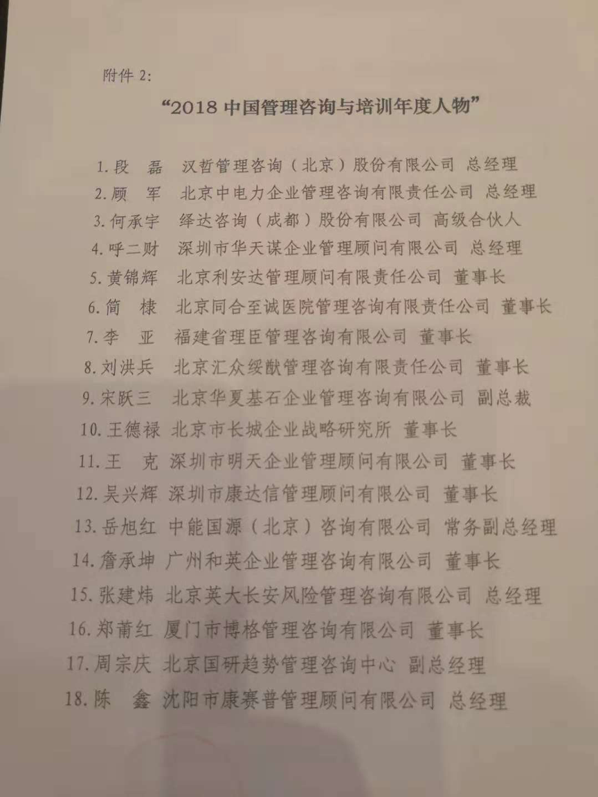 漢哲咨詢首席專家段磊博士,榮獲2018中國管理咨詢與培訓(xùn)年度人物,且名列榜首。