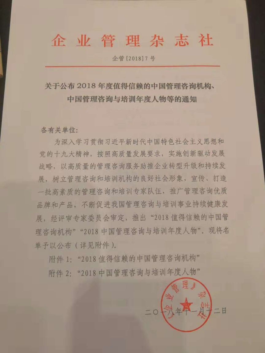 2018年11月17日,由中國管理咨詢行業(yè)主管機(jī)構(gòu)-中國企業(yè)聯(lián)合會(huì)管理咨詢委員會(huì)、培訓(xùn)工作委員會(huì)、《企業(yè)管理》雜志社主辦的“2018中國管理咨詢與培訓(xùn)高峰會(huì)”在深圳舉行,主題為“數(shù)字化時(shí)代管理咨詢助力企業(yè)高質(zhì)量發(fā)展”。