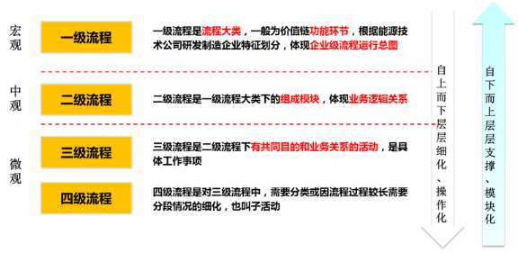 組織運作機制可以整體概括為:前臺經(jīng)營、中臺支撐、后臺服務(wù)。流程體系設(shè)計需要以組織架構(gòu)為基礎(chǔ)和前提,因此,項目組將通過行業(yè)最佳實踐、能源技術(shù)公司組織運作模式分析,與能源技術(shù)公司中高層進(jìn)行充分研討,進(jìn)一步明確組織架構(gòu)及運作模式。項目組初步認(rèn)為,能源技術(shù)公司需要建立以產(chǎn)品線為主線,中臺和后臺全力支撐產(chǎn)品,從需求立項、開發(fā)、上市推廣、銷售、采購生產(chǎn)、交付、售后的全生命周期組織運作機制,打破部門墻,建立矩陣式柔性組織體系,支撐流程的高效運轉(zhuǎn)。