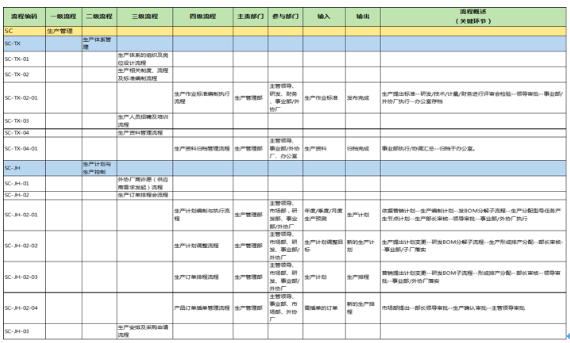 第三階段:主要為二批流程優(yōu)化、流程配套文件編寫,包含生產(chǎn)管理、采購、倉儲、交付、技術(shù)服務(wù)、質(zhì)量等流程設(shè)計(含表單)。