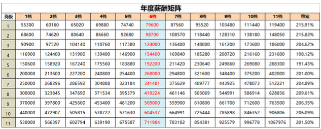 6、調(diào)整帶寬:未來在薪酬設(shè)計上要將帶寬進行拉寬,形成具有競爭力的薪酬體系,以達到優(yōu)秀人才引進的目的。