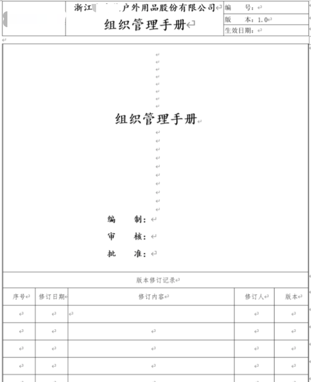 匯編形成《浙江公司戶外用品股份有限公司組織管理手冊(cè)》一份。