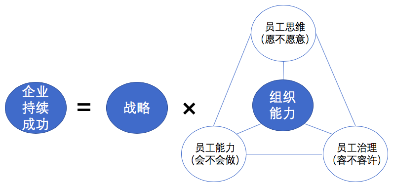 雖然以上這些名詞在任何組織都會在存在,但僅僅比較不同組織間協(xié)作的意愿、共同的目標和信息聯(lián)系的水平差異,似乎并不能完全的解釋組織之間發(fā)展差異性,因為資金、技術(shù)、設(shè)備等生產(chǎn)要素、行業(yè)的周期性與競爭情況等等,都會影響組織發(fā)展的情況,當然,還有一點是不容忽視的既是人的因素,主要包含員工的能力水平、心智狀態(tài)和領(lǐng)導者團隊的水平。人的因素在企業(yè)中的就猶如加速劑一樣,對企業(yè)的發(fā)展水平起著關(guān)鍵的調(diào)節(jié)作用,能力水平直接影響著業(yè)務(wù)能不能做,心智狀態(tài)直接影響著組織穩(wěn)不穩(wěn),能不能做到上下同欲,持續(xù)輸出,領(lǐng)導者團隊則是將人才能力和心智直接與組織目標銜接起來的直接負責人。