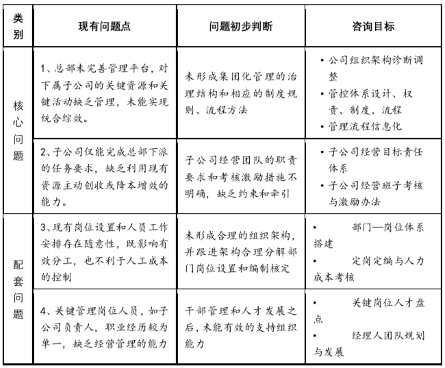 經(jīng)過調研診斷,該公司具體存在如下問題,漢哲并依此提出了對應的咨詢目標: