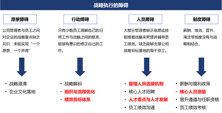 為系統(tǒng)的解決該公司的管理問題,漢哲咨詢從戰(zhàn)略成功的角度出發(fā)分別明確了組織層面與人才層面的項目著力點