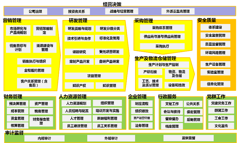 組織運(yùn)作機(jī)制可以整體概括為:前臺(tái)經(jīng)營、中臺(tái)支撐、后臺(tái)服務(wù)。流程體系設(shè)計(jì)需要以組織架構(gòu)為基礎(chǔ)和前提,因此,項(xiàng)目組將通過行業(yè)最佳實(shí)踐、能源技術(shù)公司組織運(yùn)作模式分析,與能源技術(shù)公司中高層進(jìn)行充分研討,進(jìn)一步明確組織架構(gòu)及運(yùn)作模式。項(xiàng)目組初步認(rèn)為,能源技術(shù)公司需要建立以產(chǎn)品線為主線,中臺(tái)和后臺(tái)全力支撐產(chǎn)品,從需求立項(xiàng)、開發(fā)、上市推廣、銷售、采購生產(chǎn)、交付、售后的全生命周期組織運(yùn)作機(jī)制,打破部門墻,建立矩陣式柔性組織體系,支撐流程的高效運(yùn)轉(zhuǎn)。