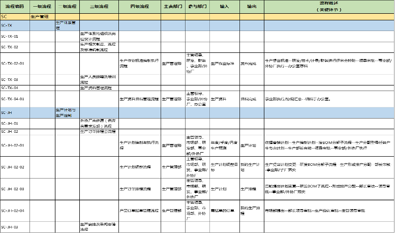 第三階段:主要為二批流程優(yōu)化、流程配套文件編寫,包含生產(chǎn)管理、采購、倉儲(chǔ)、交付、技術(shù)服務(wù)、質(zhì)量等流程設(shè)計(jì)(含表單)。