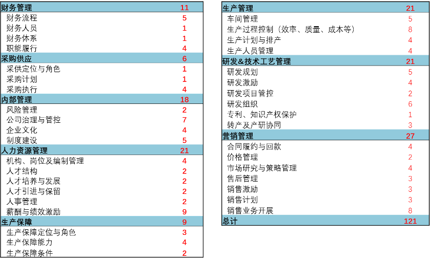 經(jīng)過調(diào)研梳理,項(xiàng)目組整理出121條管理問題。