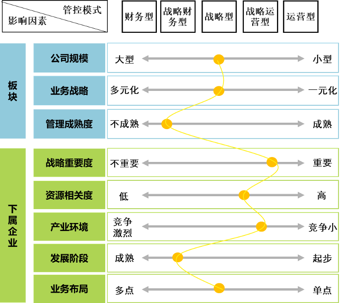 基于公司目前各業(yè)務(wù)單元發(fā)展?fàn)顩r及后期戰(zhàn)略規(guī)劃,明確公司總部、各子公司在公司內(nèi)部不同的定位,明確公司內(nèi)部的重要管控條線,集團(tuán)總部對(duì)于不同業(yè)務(wù)單元的管控模式。