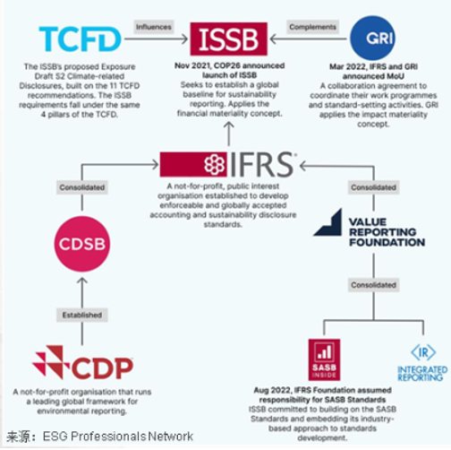 1、我國企業(yè)ESG披露主要以自愿披露為主,披露框架多借鑒國外。信息披露一般分兩類,一類是強制披露,另一類是自愿披露。我國企業(yè)披露目前無強制要求,以自愿披露為主。另外,信息披露要遵循一定的框架,ESG披露框架較多,目前國際上主流的ESG披露標(biāo)準(zhǔn)主要有GRI、ISSB、SASB、TCFD等(如下圖),而我國企業(yè)尚未形成統(tǒng)一的ESG信息披露框架,大部分企業(yè)的ESG信息披露均是在國外主流框架基礎(chǔ)上進行。