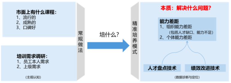 我們每年花費(fèi)大量的金錢和時(shí)間去做人才培養(yǎng)和培訓(xùn),關(guān)注事后的效果評價(jià),卻容易忽略做培訓(xùn)的初衷——我們要解決什么問題?人才盤點(diǎn)對于現(xiàn)有人才進(jìn)行能力評估與長短板盤點(diǎn),通過數(shù)據(jù)分析與診斷,能更客觀、更精準(zhǔn)定位問題,更好地解答“培什么”。