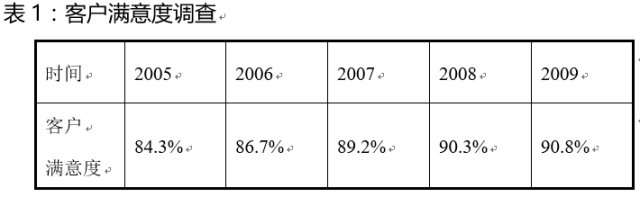 可見,從2005年起,客戶滿意度都達到滿意的程度,并且客戶滿意度逐年提高,這是一個好的趨勢,但是,也應該看到,提高幅度并不大,也沒有達到很滿意的程度,還有很大的提升空間。