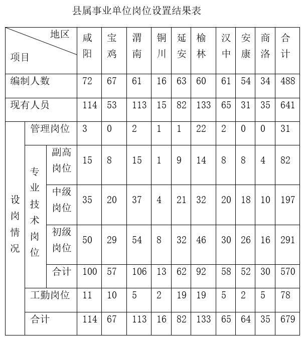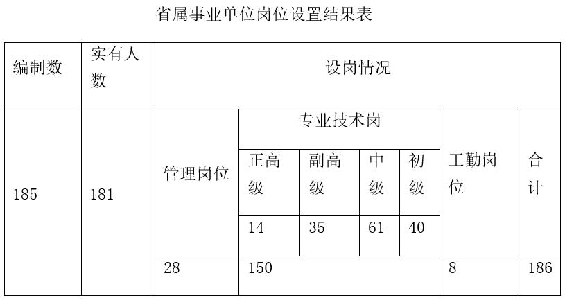 藥監(jiān)系統(tǒng)的事業(yè)單位崗位設(shè)置工作,歷時(shí)半年,全部完成崗位設(shè)置和審批工作,主要結(jié)果如下:96個(gè)事業(yè)單位中,除省屬信息培訓(xùn)中心外,全部確認(rèn)為以專業(yè)技術(shù)人員為主體,管理崗位和工勤技能崗位為輔。全系統(tǒng)共設(shè)崗1252個(gè),其中管理崗位89個(gè),專業(yè)技術(shù)崗位1048個(gè),工勤技能崗位115個(gè)。省、市、縣三級(jí)藥監(jiān)機(jī)構(gòu)各類崗位具體分布情況見下表: