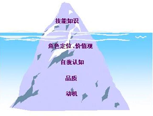 冰山模型把勝任力形象地描述為漂浮在水面上的冰山,知識(shí)和技能是在水面以上的部分,是容易改變的勝任特征;而自我概念、特質(zhì)和動(dòng)機(jī)部分是屬于潛藏于水下的深層部分,是不易改變的勝任特征,它們是個(gè)人驅(qū)動(dòng)力的主要部分,也是人格的中心能力,可以預(yù)測個(gè)人工作上的長期表現(xiàn)。