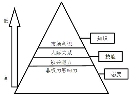 因素四“市場意識(shí)”中最重要的是創(chuàng)新與技術(shù)應(yīng)用,其次為授權(quán)和制定戰(zhàn)略。市場經(jīng)濟(jì)條件下,具有戰(zhàn)略眼光,不斷創(chuàng)新才能利于競爭的不敗之地。模型中勝任力的四個(gè)方面,對(duì)應(yīng)勝任力理論分析,“態(tài)度”位于最基礎(chǔ)層面,排第一位,是核心勝任特征,其次是“技能”,只是在此模型中為隱含性的,“市場意識(shí)”位于最外層。從冰山模型看,第一層非權(quán)力影響力為水下部分的內(nèi)隱只是最重要,其他能力為外顯層面在其后。