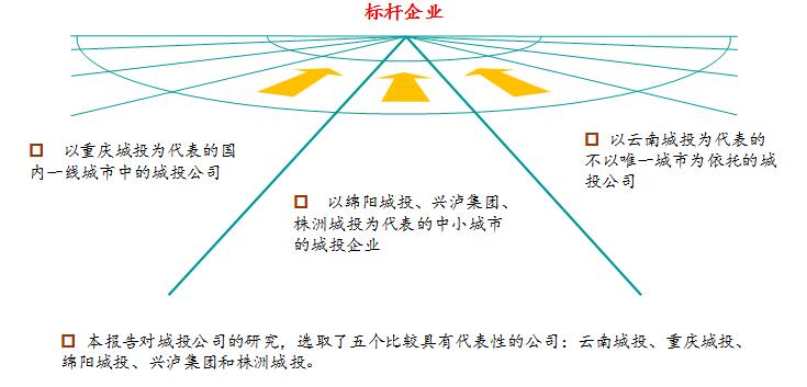 其中,涌現(xiàn)了若干規(guī)模大型、業(yè)務(wù)多元、運(yùn)行規(guī)范的城投公司,結(jié)合X公司的地理區(qū)位和所在的城市類型,以及標(biāo)桿選擇的“適度超前性“原則,本次對標(biāo)選擇了云南城投、重慶城投、株洲城投、綿陽城投、興瀘集團(tuán)等五家企業(yè)作為對標(biāo)對象。