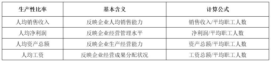 生產(chǎn)性指標(biāo)分析的目的是判斷企業(yè)在一定時(shí)期內(nèi)的生產(chǎn)經(jīng)營能力、生產(chǎn)經(jīng)營水平和生產(chǎn)成果分配等,主要指標(biāo)如表5所示。